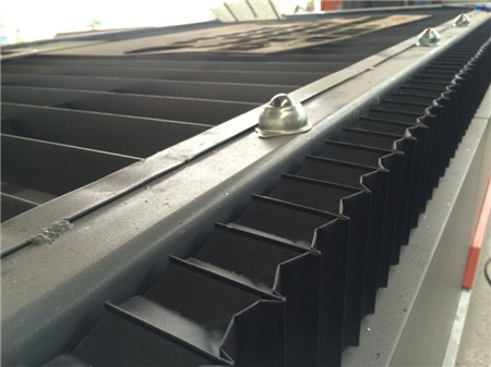 該型臺(tái)式數(shù)控切割機(jī)割臺(tái)部分采用龍門式數(shù)控切割機(jī)使用的扁鐵型割臺(tái),其結(jié)構(gòu)是用一定寬度80mm和厚度5mm的扁鐵(一般用鐵板剪切成v型結(jié)構(gòu)),相互平行排列組成。間距大小可根據(jù)常用下料板材厚度及零件大小來(lái)確定,一般為100-150mm。扁鐵在使用過(guò)程中是易損件,為便于更換,采用插入式結(jié)構(gòu)。